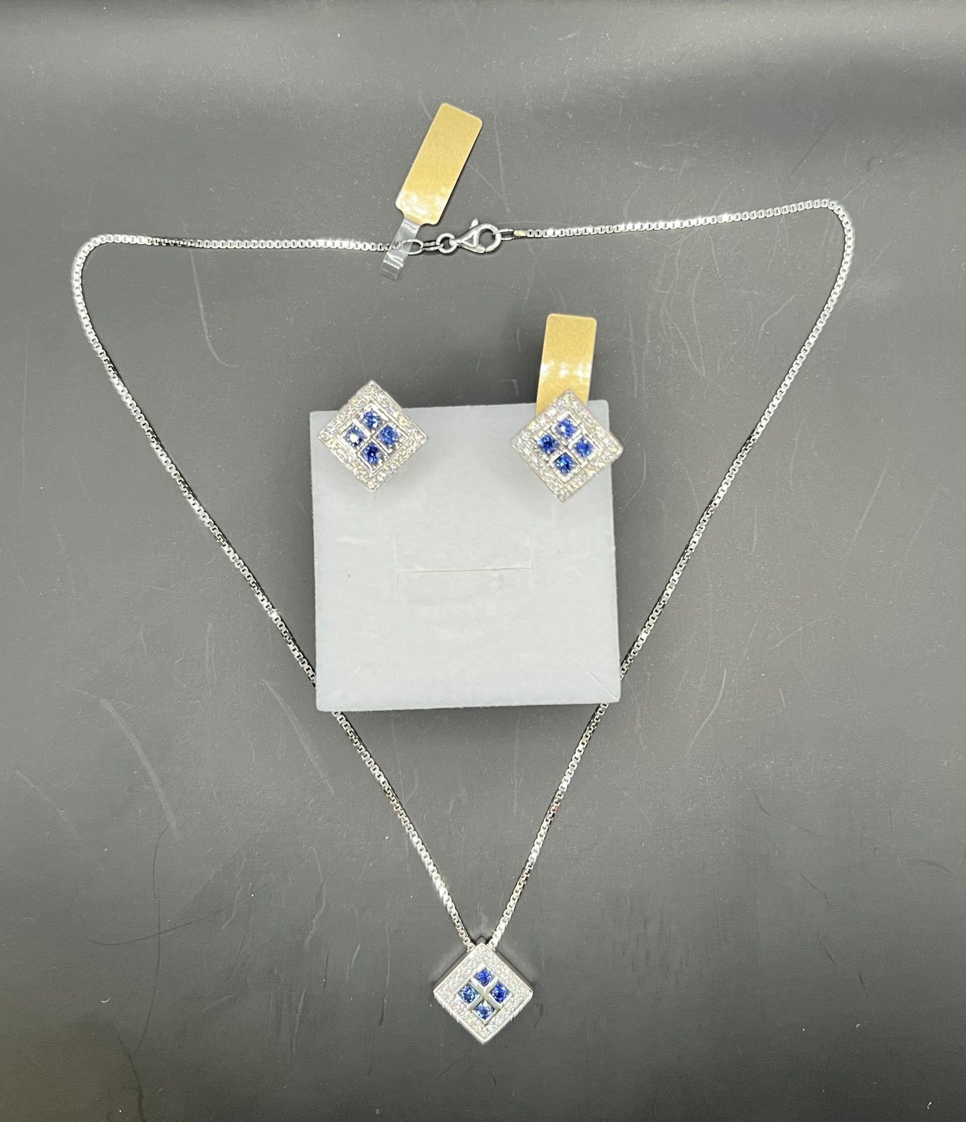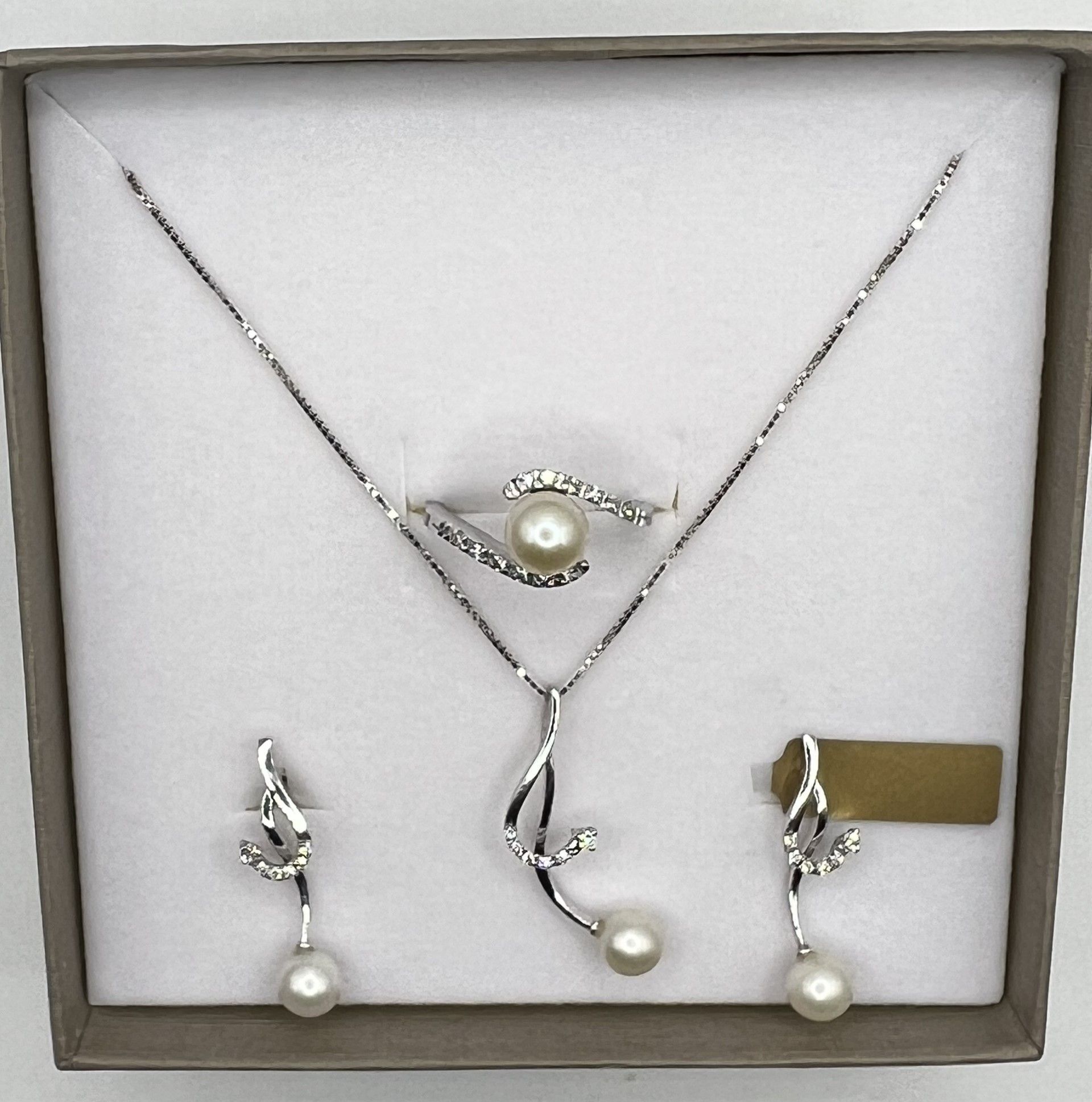 Completo (girocollo, orecchini e anello) in oro bianco 18 kt - gr 9.70